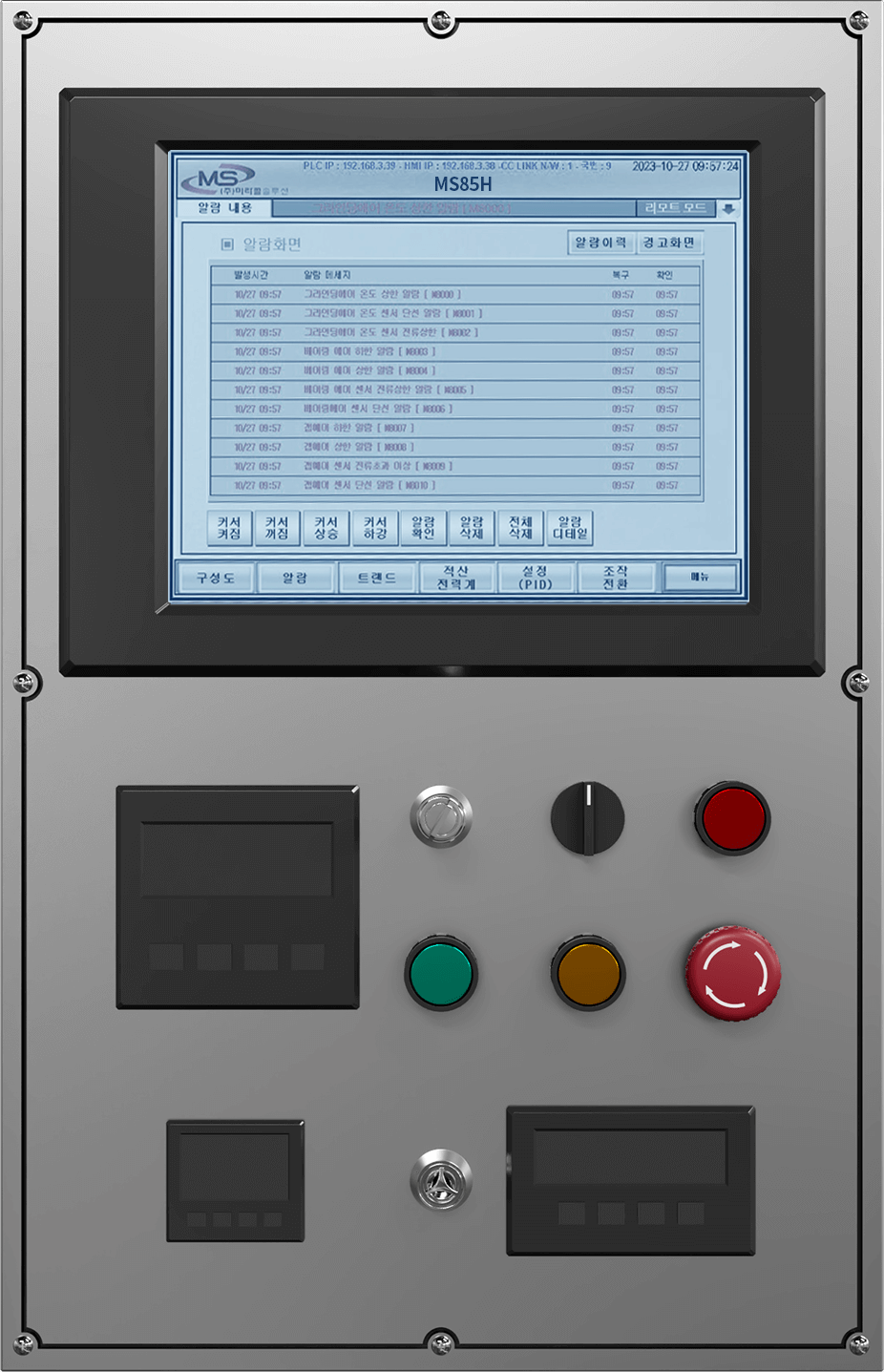 사업 분야 자동화 제어 시스템 미라클솔루션 주요 사업 분야 자동화 제어 시스템 고객사 공정에 따른 맞춤형 프로그램 설계수정이 가능한 유연한 자동화 제어시스템미라클솔루션의 자동화 제어시스템 설계 기술은공정 제어시스템의 안정성 확보와 신속한 공급을 가능케합니다. 고객사 공정에 따른 맞춤형 프로그램 설계 수정이 가능한 유연한 자동화 제어시스템 미라클솔루션의 자동화 제어시스템 설계 기술은 공정 제어시스템의 안정성 확보와 신속한 공급을 가능케합니다. 설비의 전기제어 시스템설계 및 제작 ㆍ고객사의 요청에 맞게 프로그램 설계/수정 가능ㆍ설비자동제어 : 설정값만 입력하면, 실제 가동 시, 자동 컨트롤, 모니터링을 통해 이상 발생 시 알람/자동 전지 기능 전기판넬 구성도 전기판넬 구성도 ㆍ 고객사의 요청에 맞게 프로그램 설계/수정 가능ㆍ 설정값만 입력하면, 실제 가동시, 자동 컨트롤ㆍ 사용자 편의 인터페이스 제공: 언어 (영어, 일본어, 중국어, 한글) ㆍ 고객사의 요청에 맞게 프로그램 설계/수정 가능ㆍ 설정값만 입력하면, 실제 가동시, 자동 컨트롤ㆍ 사용자 편의 인터페이스 제공: 언어 (영어 ,일본어, 중국어, 한글) ㆍ 고객사의 요청에 맞게 프로그램 설계/수정 가능ㆍ 설정값만 입력하면, 실제 가동시, 자동 컨트롤ㆍ 사용자 편의 인터페이스 제공: 언어(영어 ,일본어, 중국어, 한글) 트렌드 관리 ㆍ 주요 항목에 대한 실시간 모니터링 가능 알람 이력 관리 ㆍ 모니터링을 통해 이상 발생시 알람/자동 정지 기능 ㆍ 모니터링을 통해 이상 발생시 알람/ 자동 정지 기능